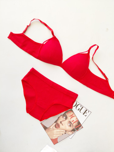 ست شورت و سوتین فنردار اسفنجی نخی کبریتی نیم جکدار فشن