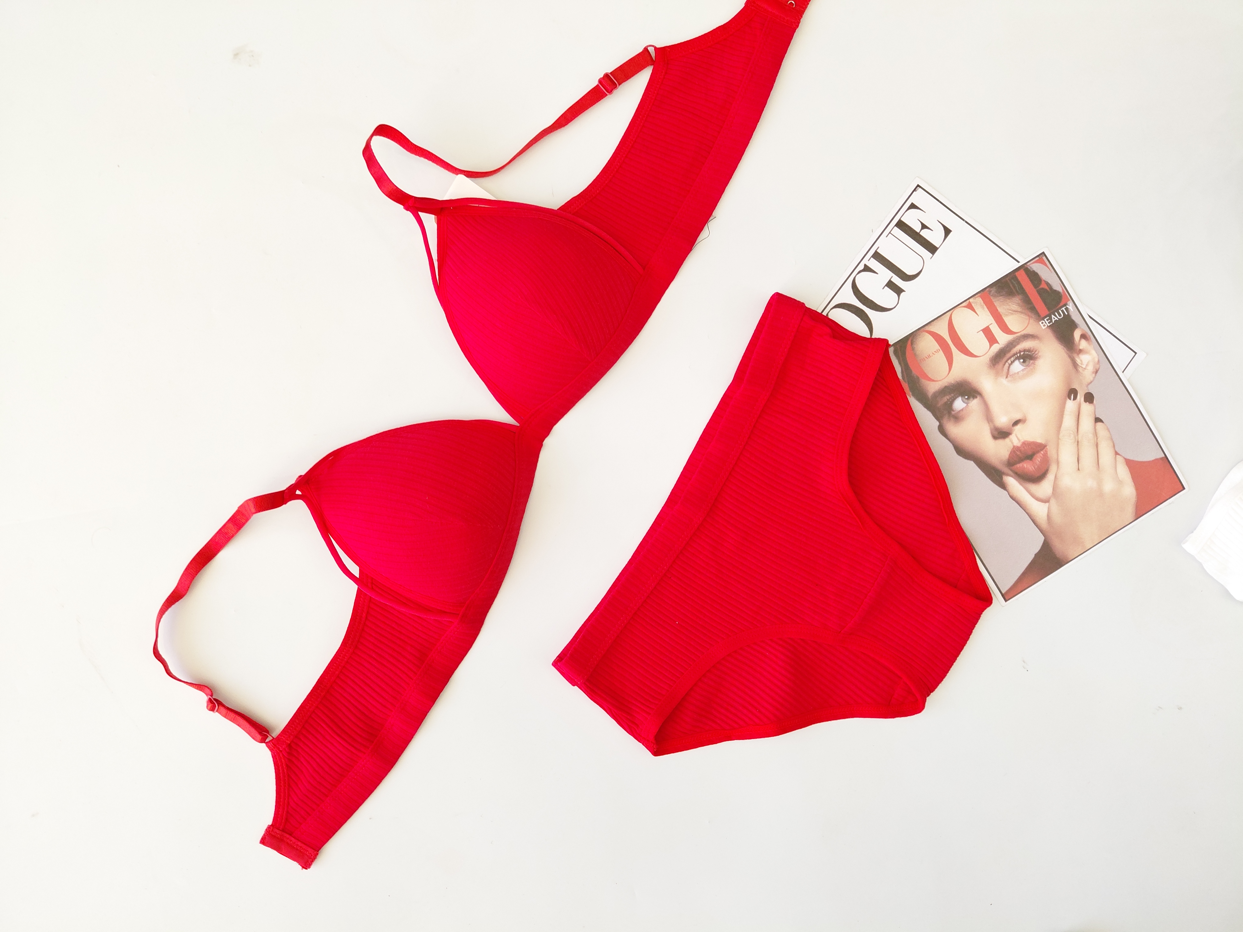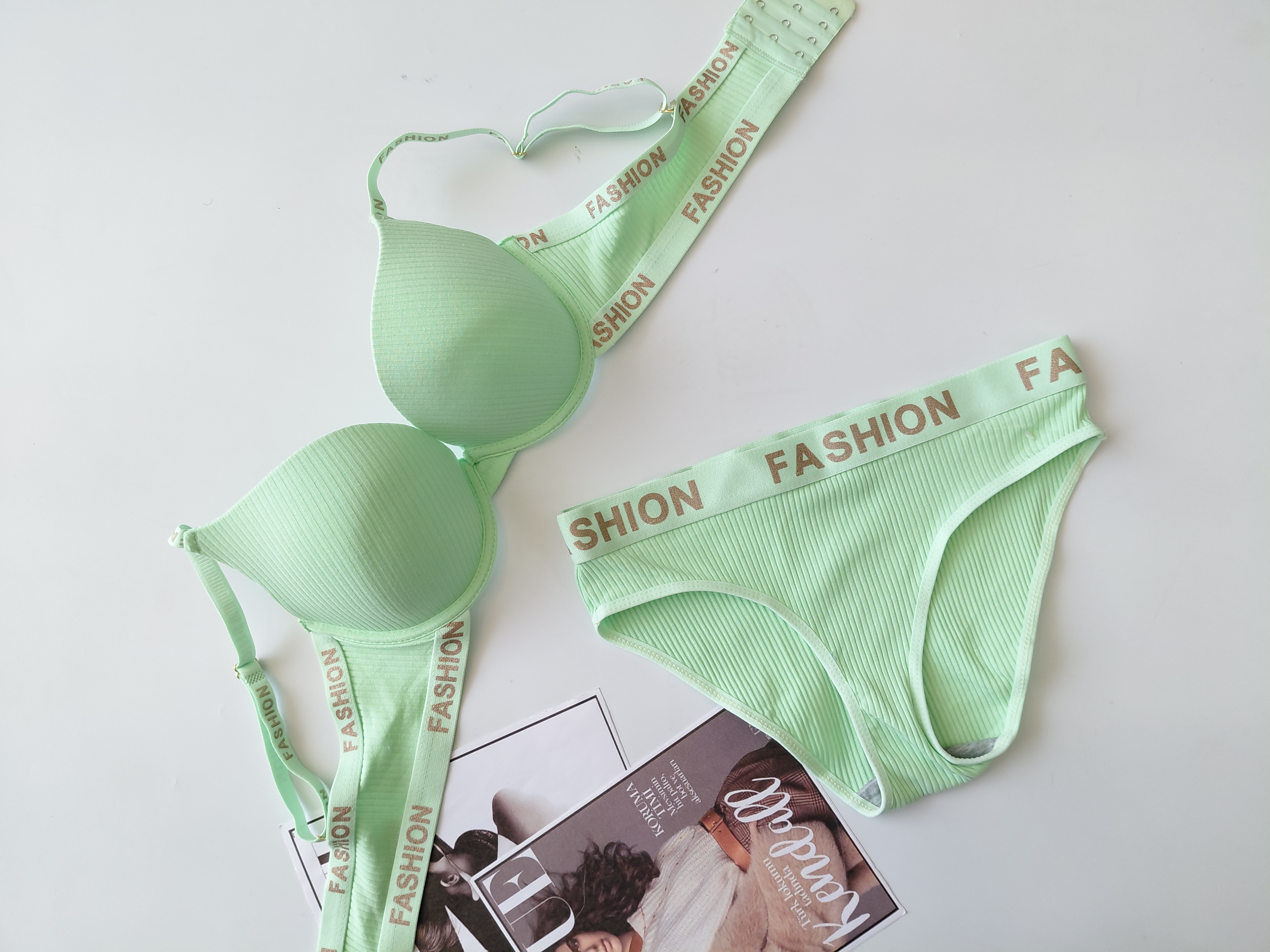 ست شورت و سوتین فنردار اسفنجی نخی کبریتی نیم جکدار فشن
