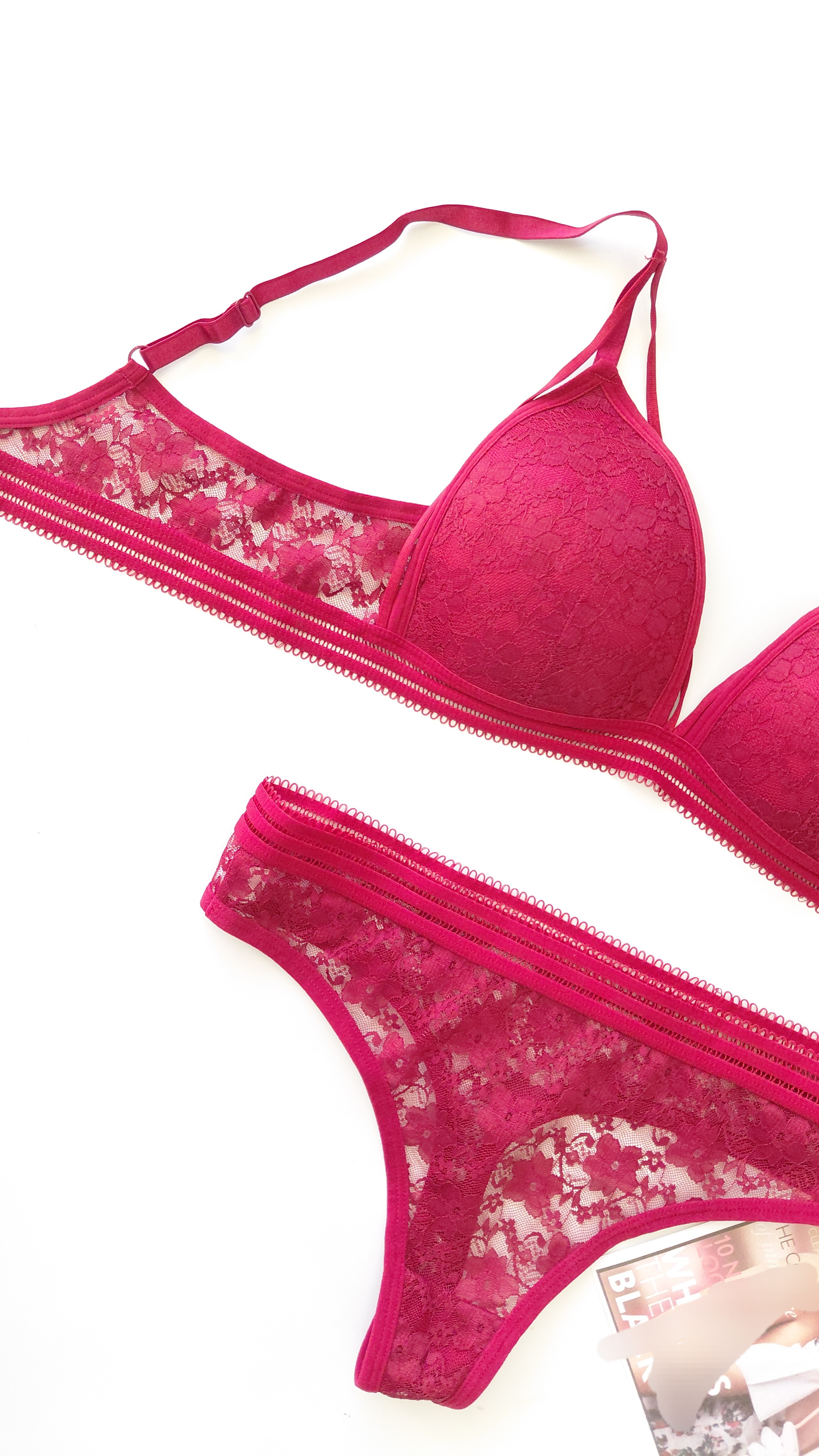 ست(اسفنجی) شورت و سوتین بدون فنر فانتزی هارنس دار گیپور